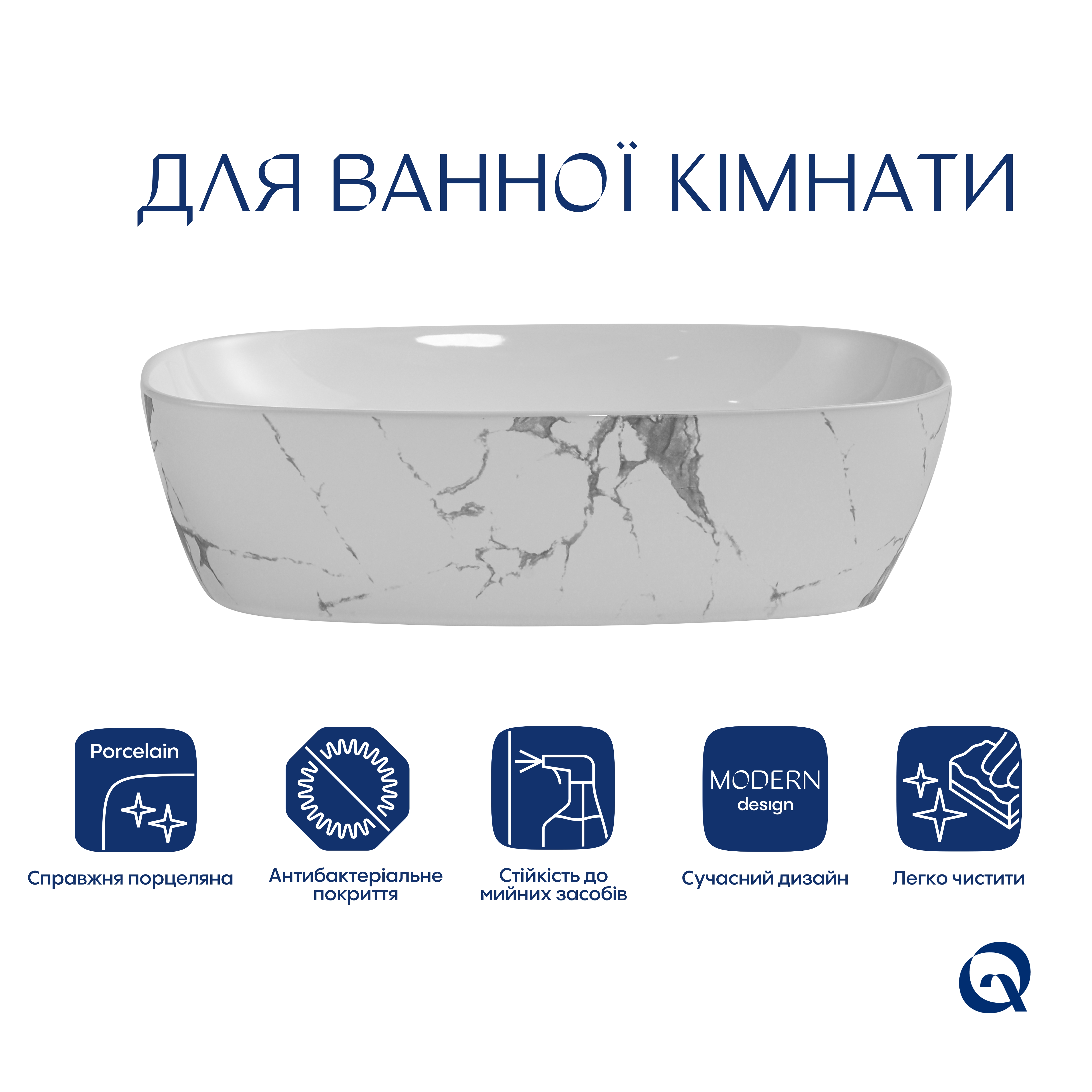 Характеристики Раковина накладная Qtap Robin 500х380х140 мм, Marble, прямоугольная, с донным клапаном QT04116302MR код товару SD00054299