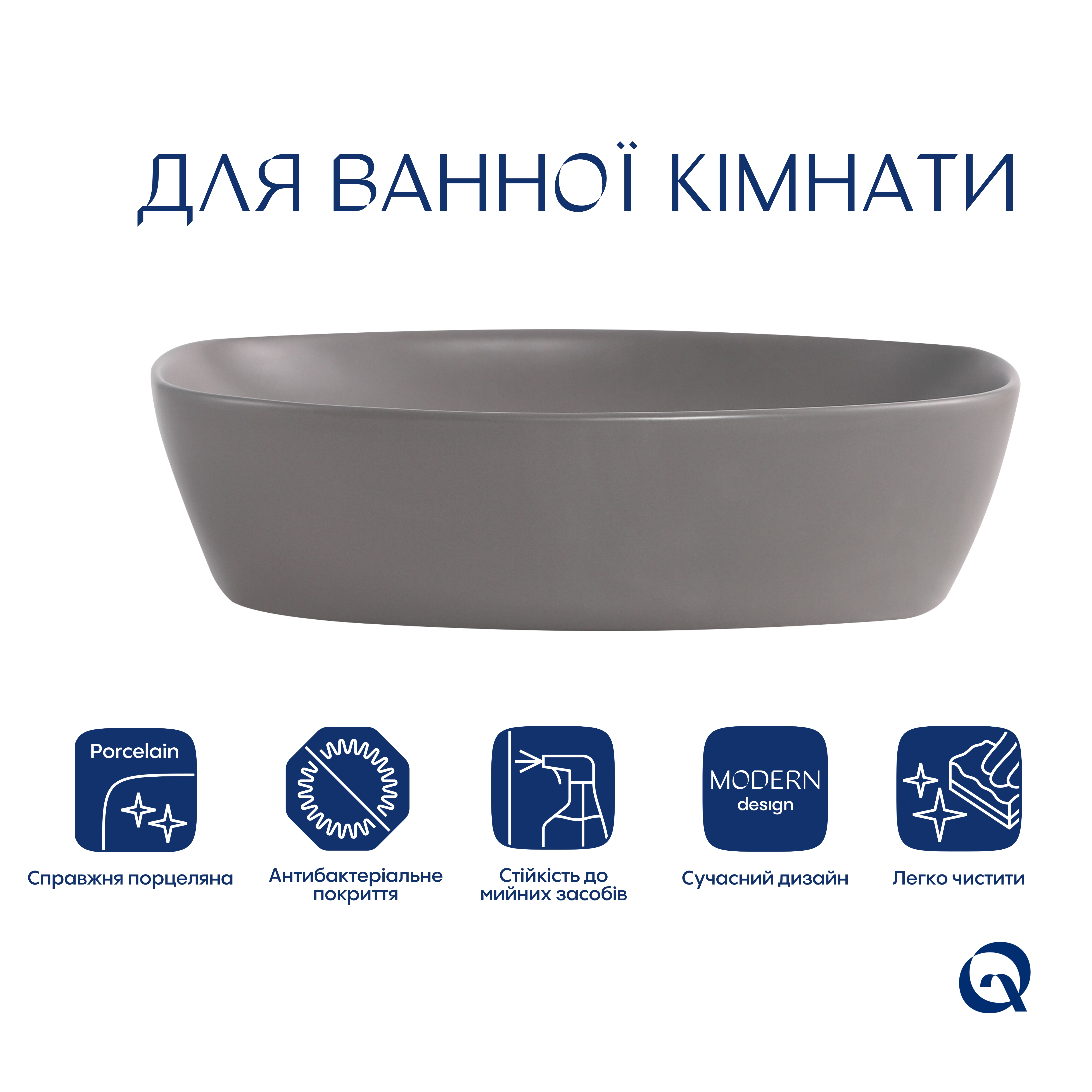 Характеристики Раковина накладная Qtap Robin 500х380х140 мм, Stone grey, прямоугольная, с донным клапаном QT04116302SG код товару SD00054297