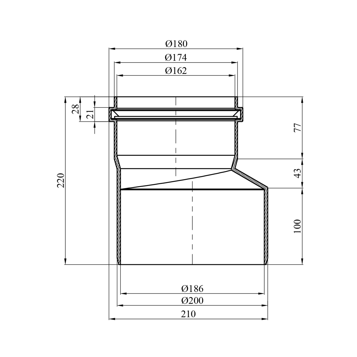 Размеры: переход с диаметра 200 мм на 160 мм.
