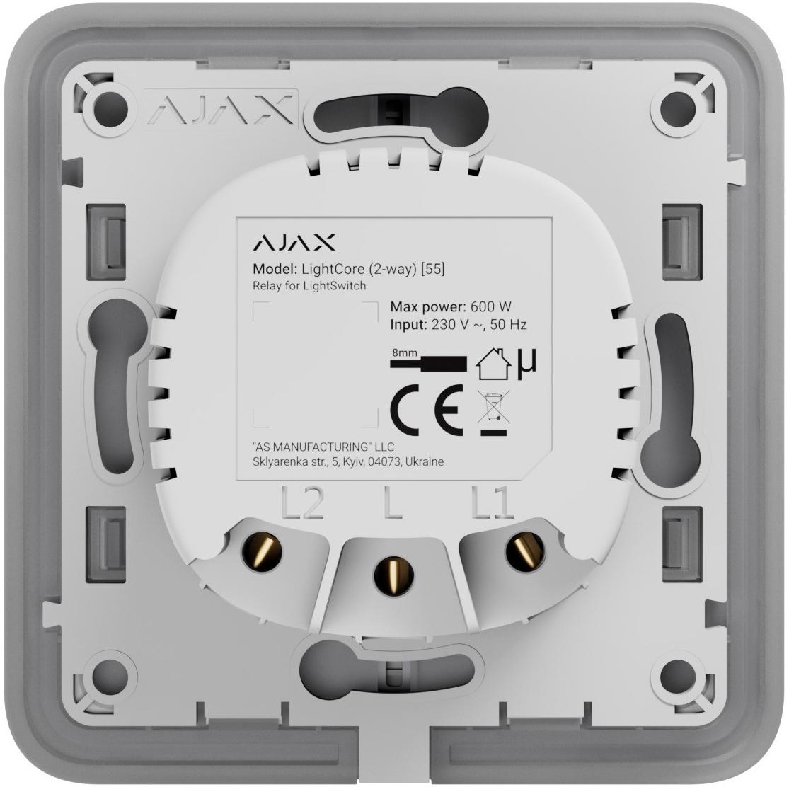 Описание Реле двоклавішний вимикач Ajax LightCore 2-gang for LightSwitch Jeweler, бездротовий код товару 000029718