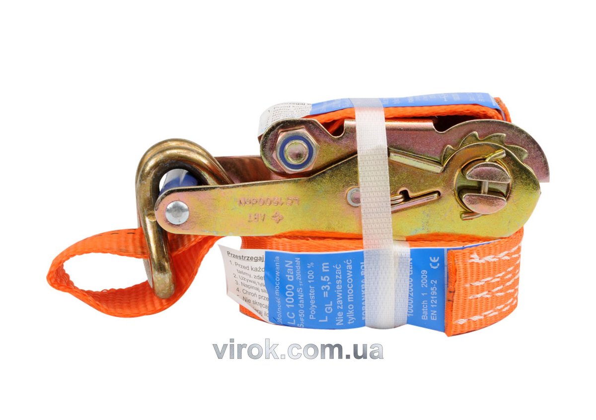 Характеристики Пас для крепления багажа с трещоткой VOREL 1000 daN 35мм х 2м код товару 82377