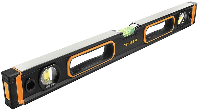 Рівень Tolsen Профі, 60см, 3 капсули, алюмінієвий, з магнітами, отвори для руки