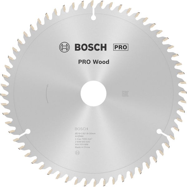 Описание Пильный диск BOSCH Optiline Wood 216x30x2,8 мм, 60 зубьев код товару 2608640642