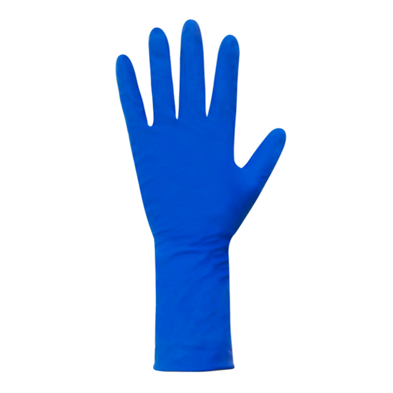 Матеріал: - основа: латекс; Особливості: - вид рукавички: господарська, захисна, нестерильна - присипка - немає - колір основи: синій; - універсальна форма; - рівномірно загорнутий край (валик) манжети; - довжина рукавички: 30см - розмір: 9; - вага пари: 46 г.; Кількість в упаковці - 12 пар Вага упаковки - 0,552 кг. Групова упаковка - картонний ящик Кількість пар у груповій упаковці - 240 пар