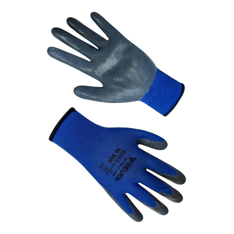 Описание Рукавички синтетичні сині з сірим нітриловим покриттям 10 (69051) код товару 1151960119
