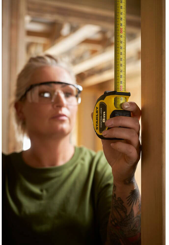 Характеристики Рулетка CONTROL-LOCK 8 м, 25 мм, прорезиненный корпус, двусторонняя шкала код товару STHT37240-3