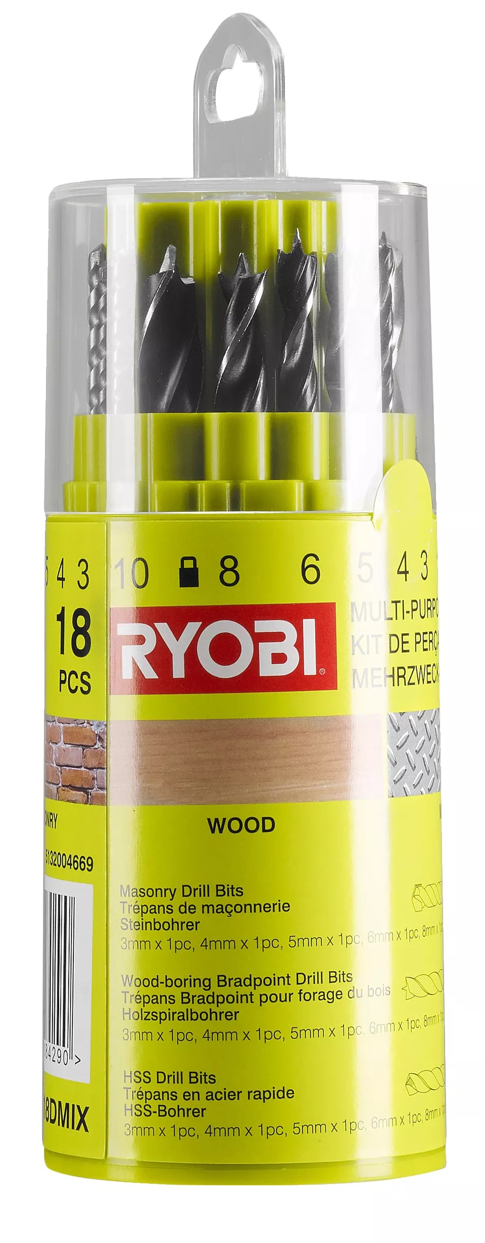 Описание Ryobi Набір свердел RAK18DмIX, 18шт код товару 5132004669