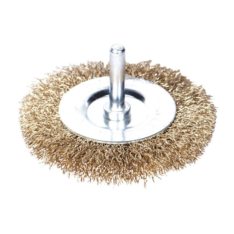 Описание Щетка проволочная дискообразная Ø75мм хвостовик Ø6мм (латунированная) SIGMA код товару 916
