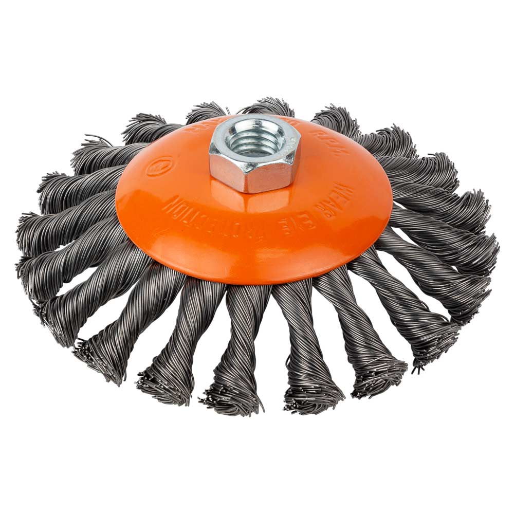 Характеристики Щетка проволочная конусообразная 125мм М14*2мм GRAD (9040125) код товару 9040125