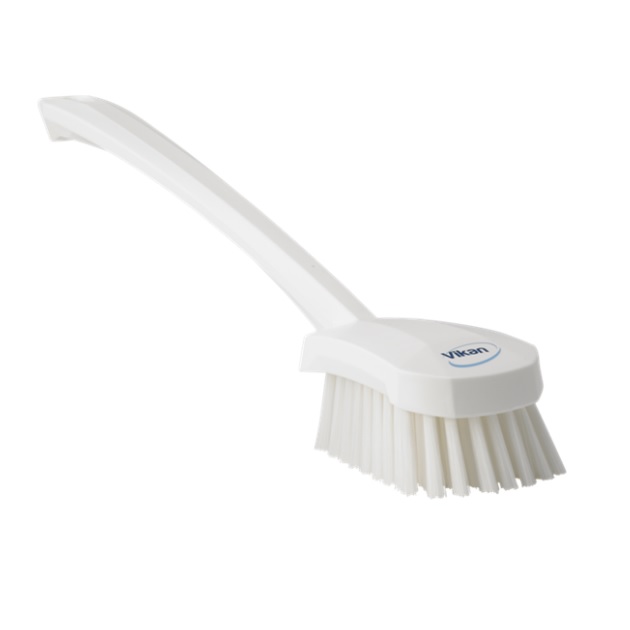 За допомогою довгої ручки цієї щітки можна дістатися до найвіддаленіших ділянок обладнання. Розташований під кутом ворс середньої жорсткості призначений для миття обладнання, глибоких відер, контейнерів, бочок і т.д.