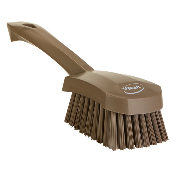 Щітка для миття з короткою ручкою ідеально підходить для легкої та ефективної щоденного прибирання бруду з конвеєрних стрічок, виробничих ліній, механізмів і робочих поверхонь.