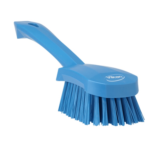 Щітка для миття з короткою ручкою ідеально підходить для легкої та ефективної щоденного прибирання бруду з конвеєрних стрічок, виробничих ліній, механізмів і робочих поверхонь.