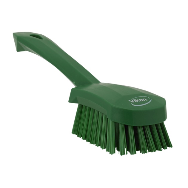 Щітка для миття з короткою ручкою ідеально підходить для легкої та ефективної щоденного прибирання бруду з конвеєрних стрічок, виробничих ліній, механізмів і робочих поверхонь.