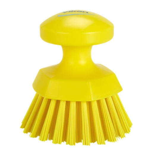 Ручна кругла щітка ефективно відтирає і очищає конвеєрні стрічки, харчові контейнери та інші поверхні. Має ергономічну конструкцію, яка дозволяє сильніше натискати на щітку при використанні.