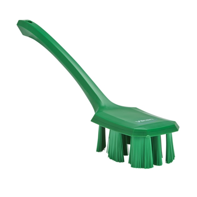 Щітка з довгою ручкою і жорстким ультрагігіенічним ворсом UST. Підвищена міцність ворсу забезпечує високу якість очищення верстатів, відер, контейнерів та труб, де високий ризик забруднення. Всі щітки UST мають особливий малюнок ворсу, який мінімізує ризик випадання і попадання ворсинок в їжу.