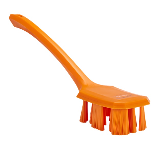 Щітка з довгою ручкою і жорстким ультрагігіенічним ворсом UST. Підвищена міцність ворсу забезпечує високу якість очищення верстатів, відер, контейнерів та труб, де високий ризик забруднення. Всі щітки UST мають особливий малюнок ворсу, який мінімізує ризик випадання і попадання ворсинок в їжу.