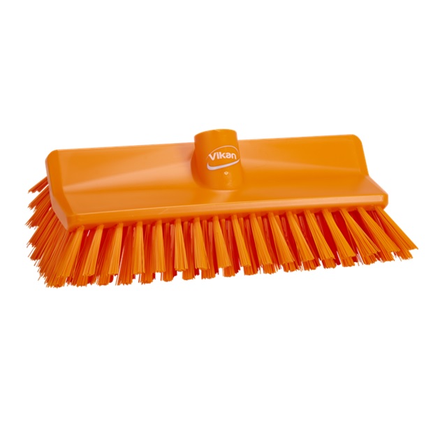 Вигнута колодка цієї щітки призначена для прибирання уздовж стику між підлогою і стіною, а також статі під обладнанням, тому що кут нахилу сполучної частини дозволяє користуватися щіткою горизонтально. Ця щітка ідеально підходить і для очищення зливоприймачів.