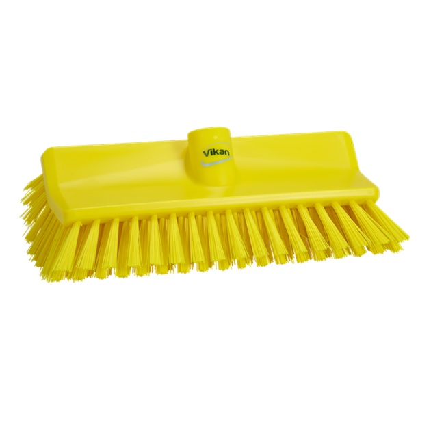 Вигнута колодка цієї щітки призначена для прибирання уздовж стику між підлогою і стіною, а також статі під обладнанням, тому що кут нахилу сполучної частини дозволяє користуватися щіткою горизонтально. Ця щітка ідеально підходить і для очищення зливоприймачів.
