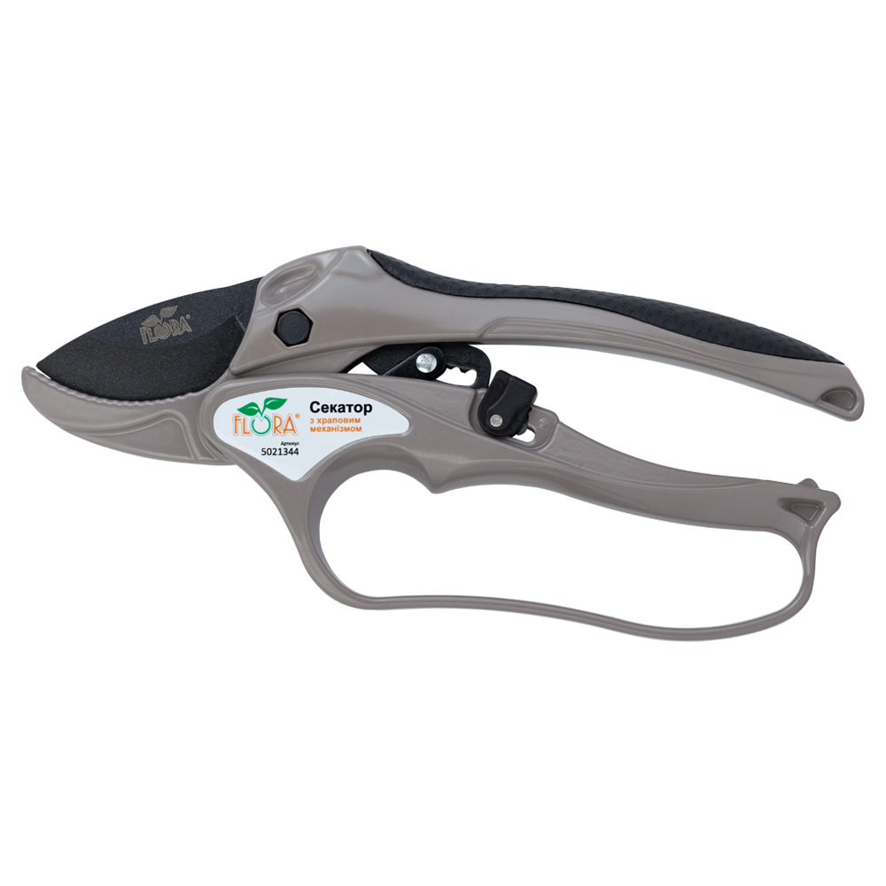 Описание Секатор с храповым механизмом 205мм, нержавеющая сталь FLORA код товару 5021344