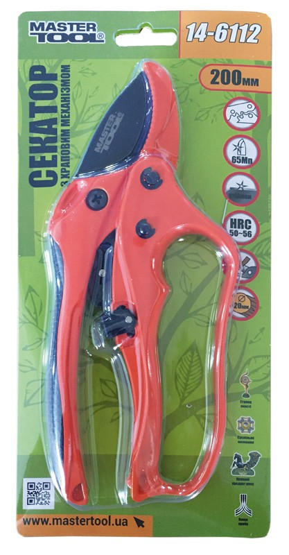 Секатор садовый MASTERTOOL 200 мм с храповым механизмом, AL+TPR код товару 14-6112 Master Tool, Mastertool