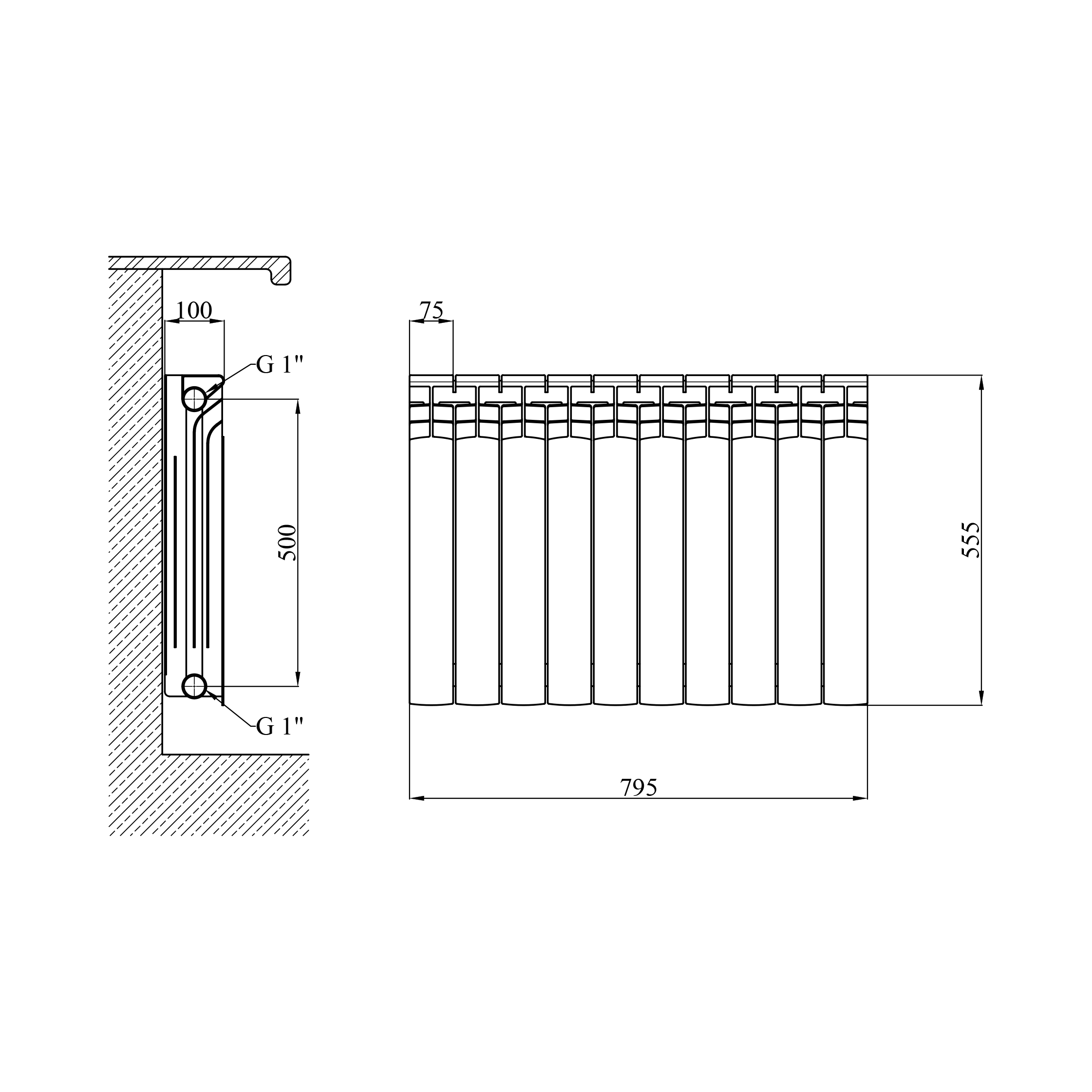 Характеристики Секции радиатора Kroner Cathrin 500Р 500х80х100 мм код товару CV034121