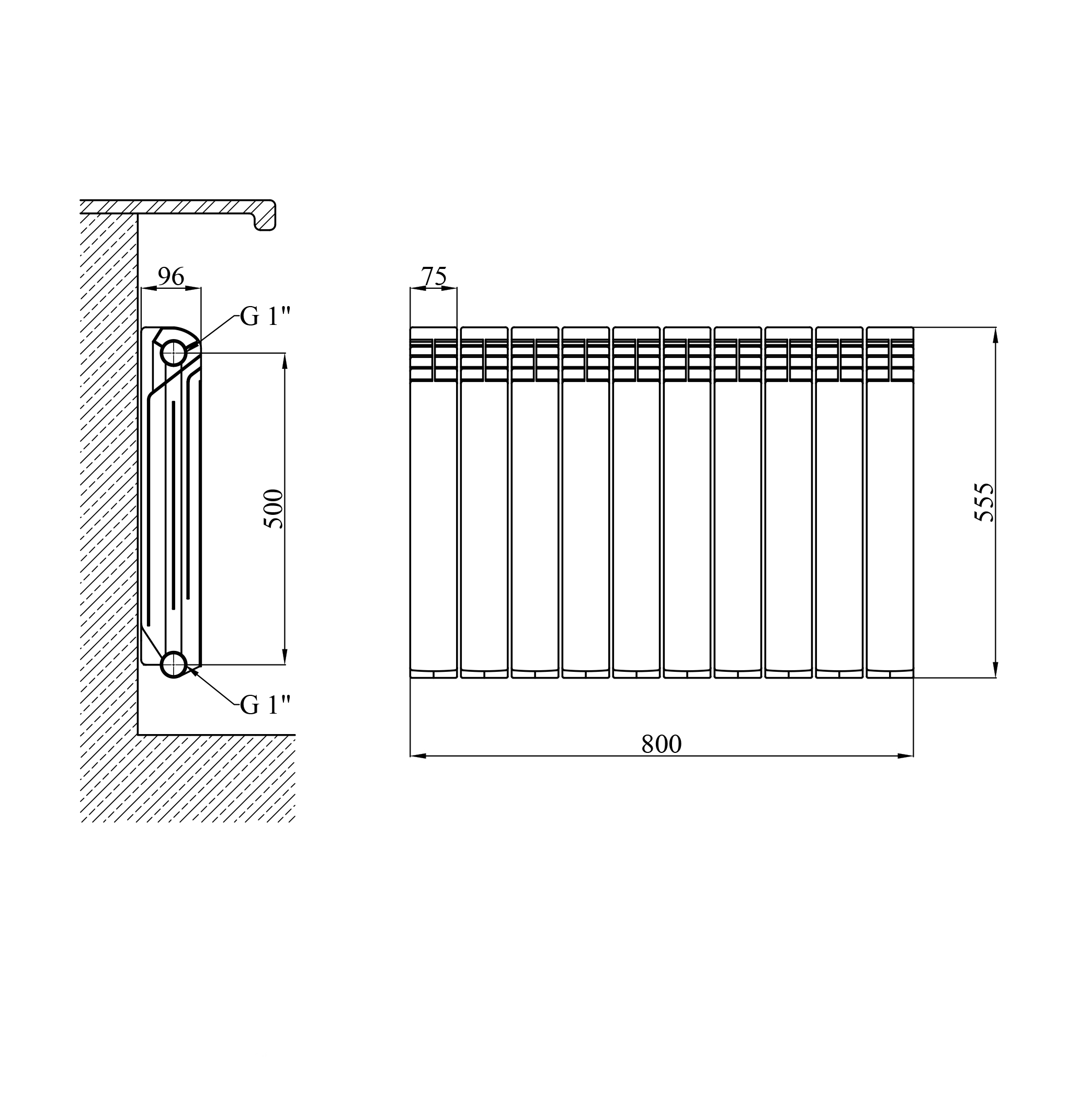 Характеристики Секция биметаллического радиатора Kroner Laura 500М 500х80 мм код товару CV034122