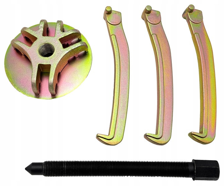 Съёмник, как швейцарский нож, в мире механики. Легко справляется с задачами. Снимает подшипники, шестерни, всё, что нужно. Два или три захвата? Выбор за вами. Фиксация надёжная, как крепость. Работает с разными диаметрами. Удобно держать, не выскользнет из рук. С ним не страшны трудности.