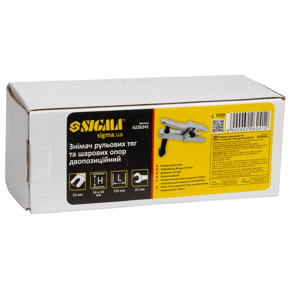 Характеристики Съемник рулевых тяг и шаровых опор 22мм SIGMA двухпозиционный код товару 6226241