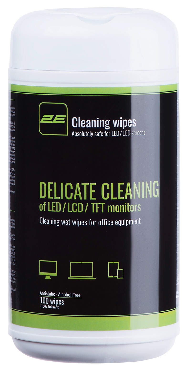 Вологі серветки призначені для м’якого та безпечного видалення бруду, пилу і жирних плям з екранів електронних пристроїв – моніторів, ноутбуків, телевізорів та іншої техніки. Серветки антистатичні та не містять алкоголю.