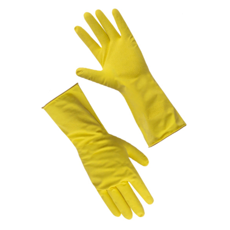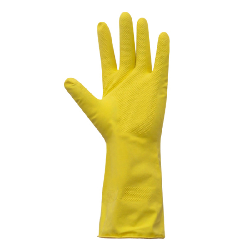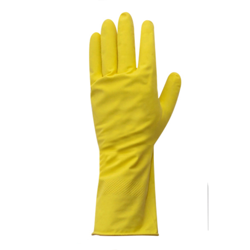 Материал: - основа: латекс; Особенности: - вид перчатки: хозяйственная, защитная, нестерильная - присыпка - так - цвет основы: желтый; - универсальная форма; - равномерно завернутый край (валик) манжеты; - текстурированные; - длина перчатки: 30см - размер: 7; - вес пары: 50 г .; Количество в упаковке - 12 пар Вес упаковки - 0,600 кг. Групповая упаковка - картонный ящик Количество пар в групповой упаковке - 240 пар