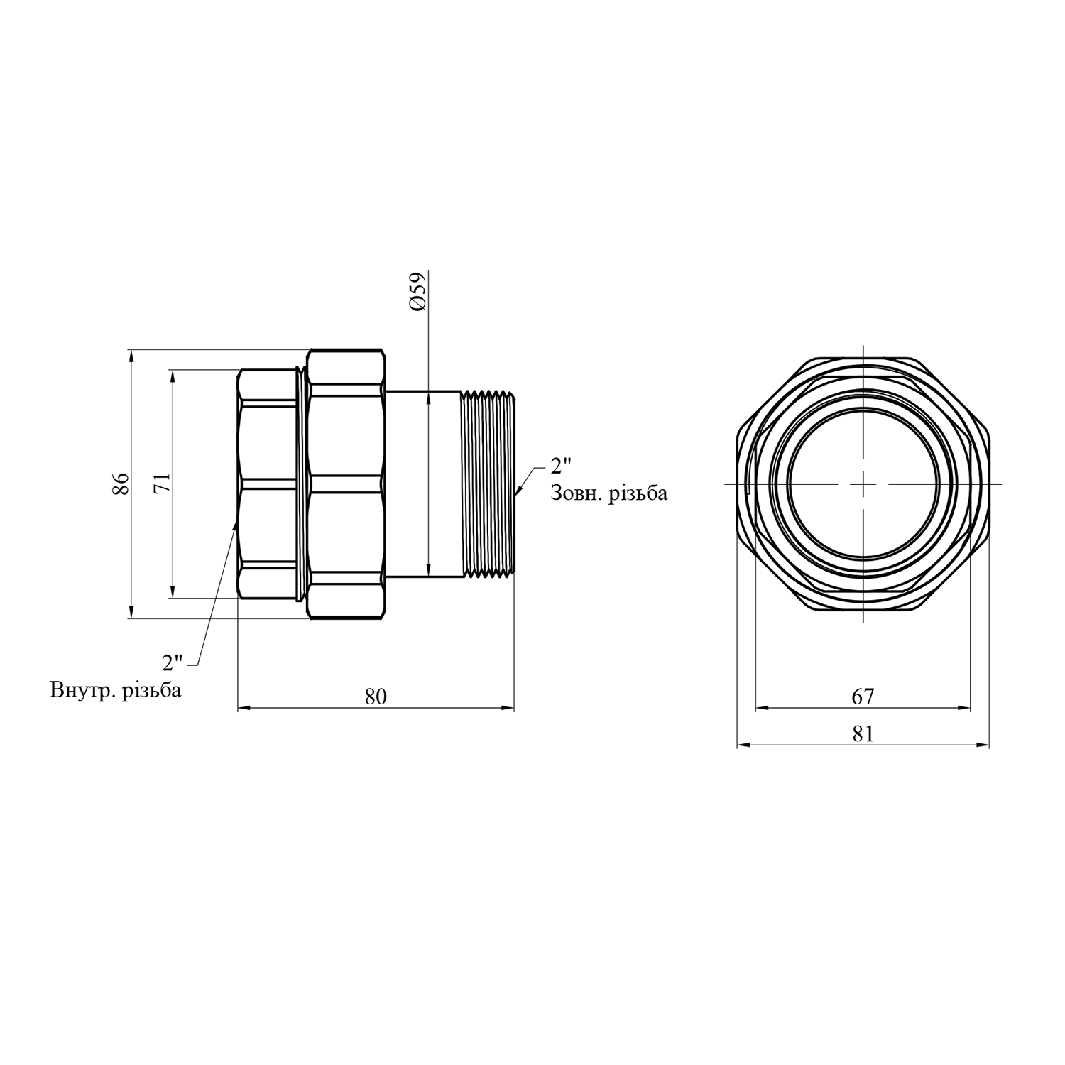 Описание Сгон-американка прямая Karro 2 ВН никелированная KR-3102 код товару CV013198
