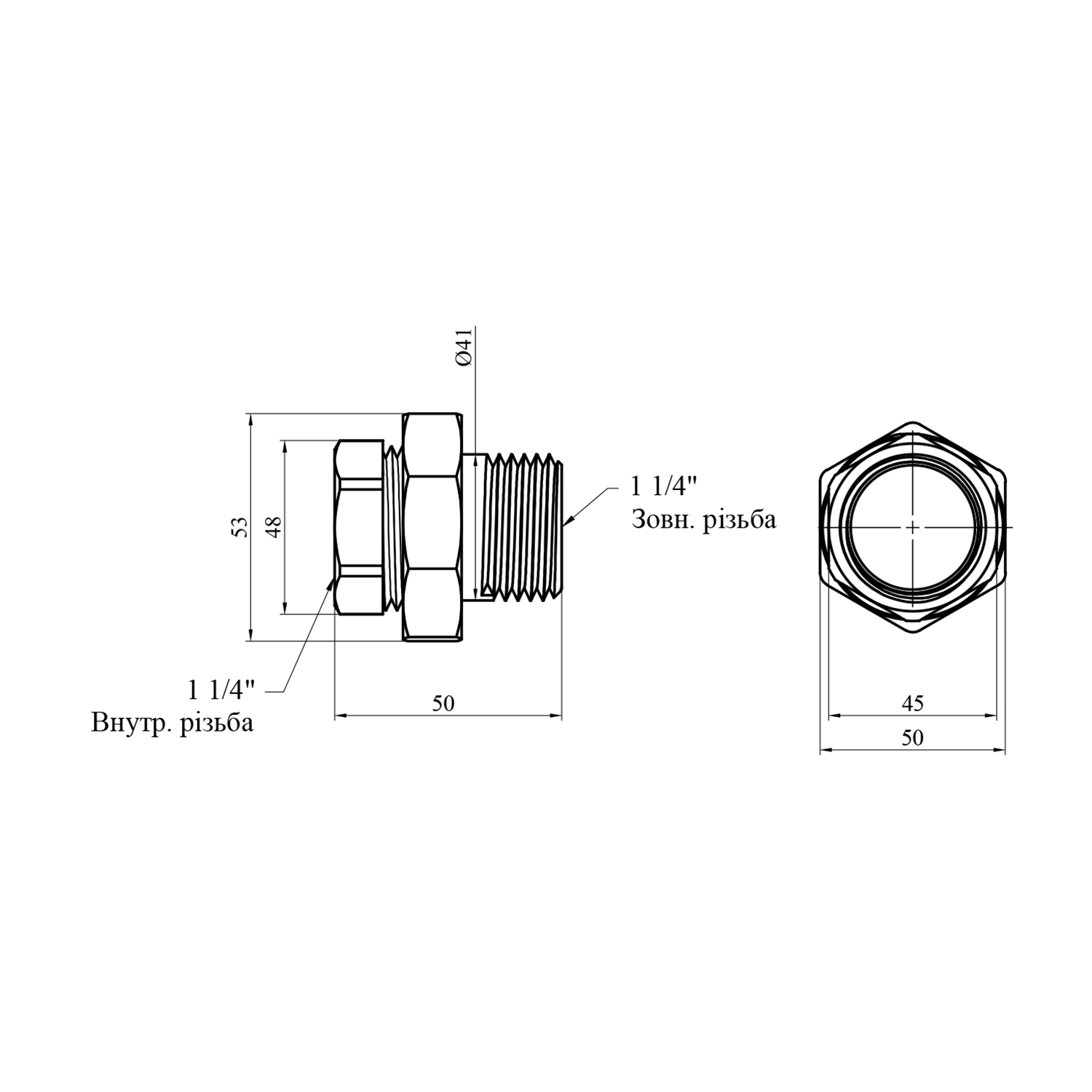Характеристики Сгон-американка прямая STA 1 1/4 ВН латунная код товару CV011358