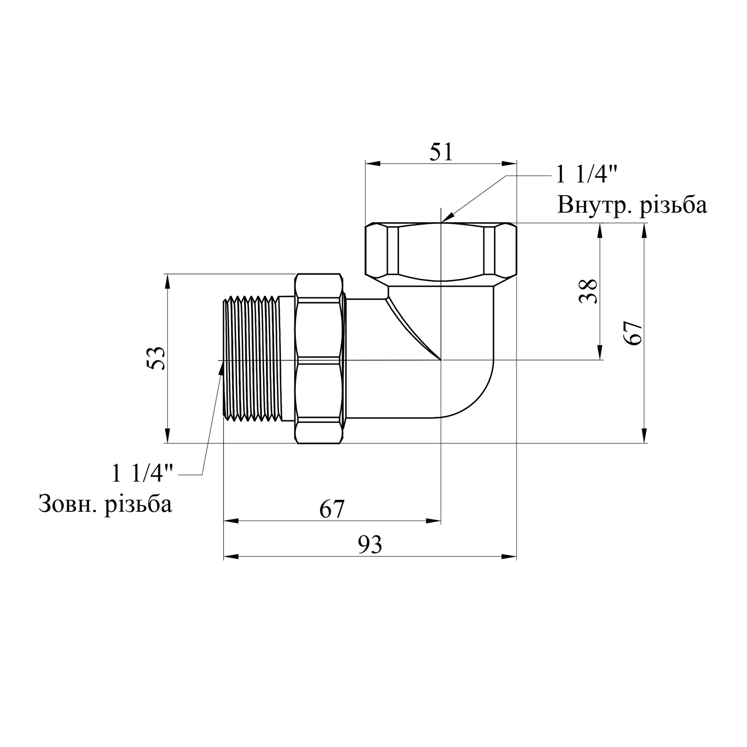 Описание Сгон-американка угловая STA 1 1/4 ВН никелированная код товару CV011035