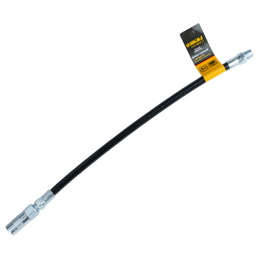 Описание Гибкий шланг с наконечником для шприц-масленки 8×300мм SIGMA код товару 6300731