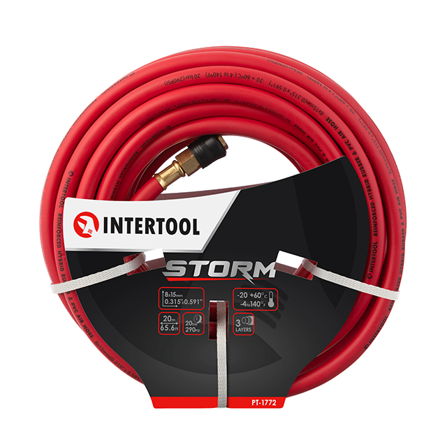 Гибридный шланг 20м, 8*15мм, 20 атм, с латунными соединениями код товару PT-1772 Intertool