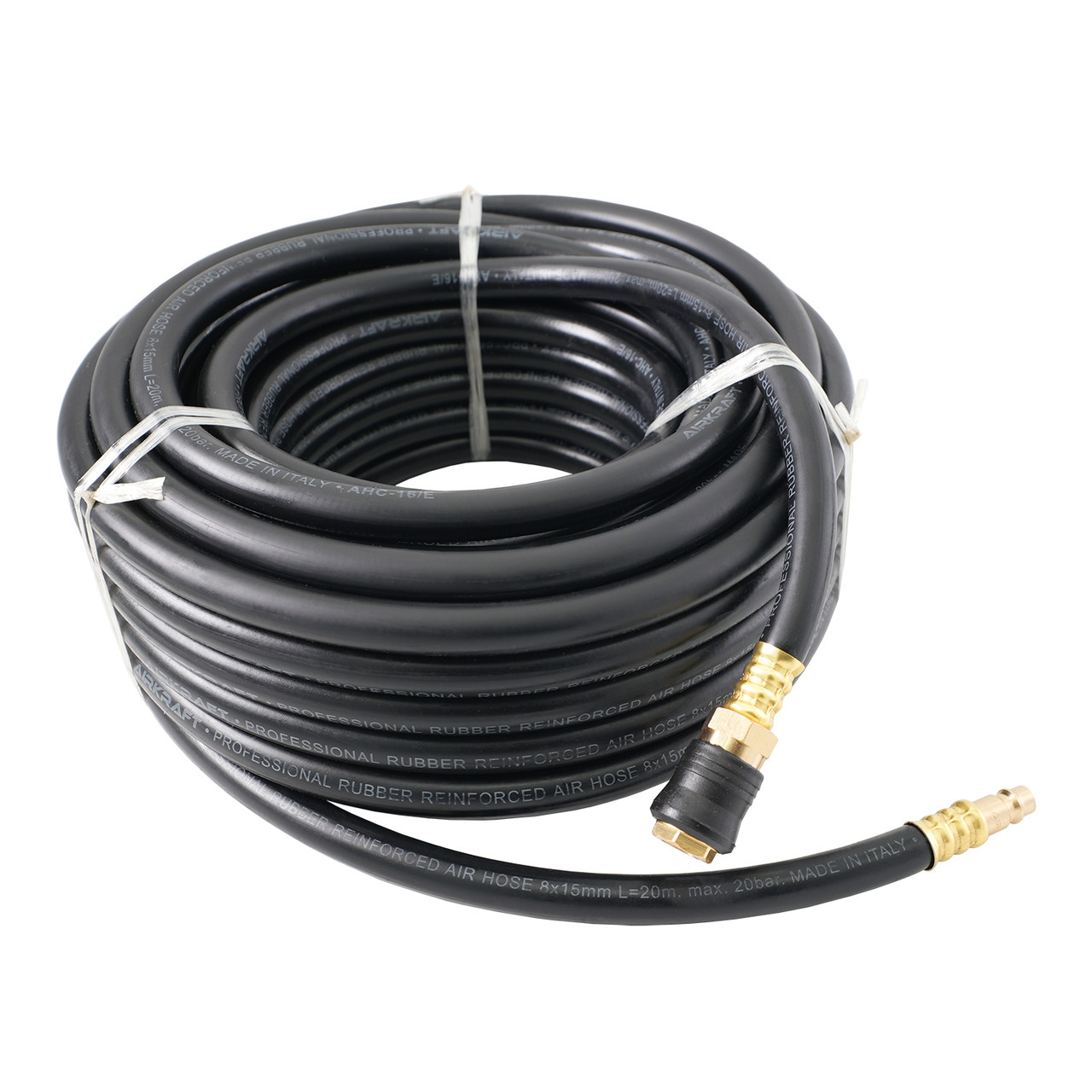 Описание Шланг резиновый воздушный армированный (PROFI) 20 атм 8x15мм, 10м с латунными быстроразъемными соединениями AIRKRAFT AHC-16-D код товару AHC-16-D