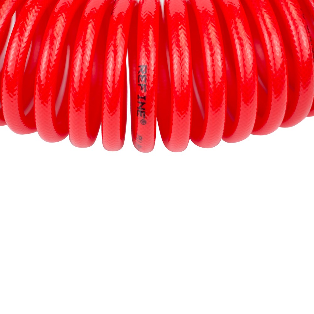 Шланг спиральный полиуретановый REFINE длиной 15 м, диаметром 5.5×8 мм. Армированный для высокой прочности и устойчивости к механическим повреждениям. Идеален для использования в различных сферах.