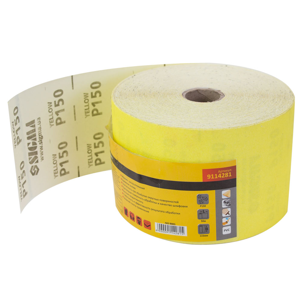 Характеристики Шлифовальная бумага рулон 115мм*50м P150 SIGMA код товару 9114281