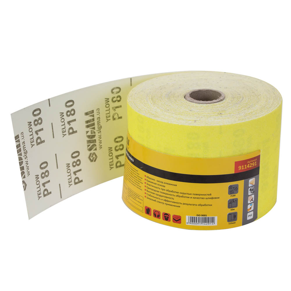 Характеристики Шлифовальная бумага рулон 115мм*50м P180 SIGMA код товару 9114291