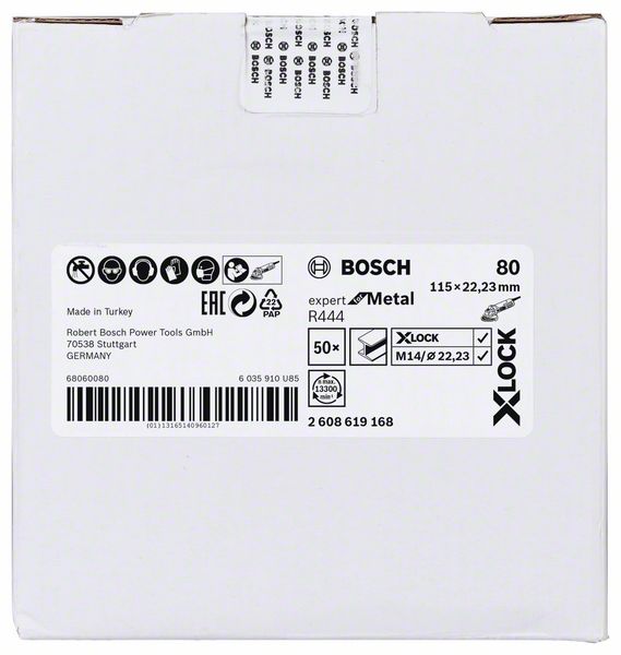 Характеристики Волокнистые шлифовальные круги X-LOCK, Ø115 мм, G 80, 1 шт. BOSCH код товару 2608619168