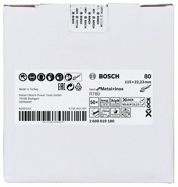 Характеристики Шліфувальний круг X-LOCK, 115 мм, G80, отвір зірочка, BOSCH код товару 2608619180