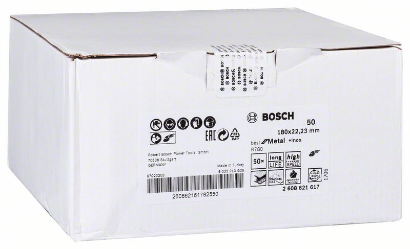 Характеристики Шлифовальный круг R780 для металла и Inox 180 x 22,23 мм, G50 BOSCH код товару 2608621617