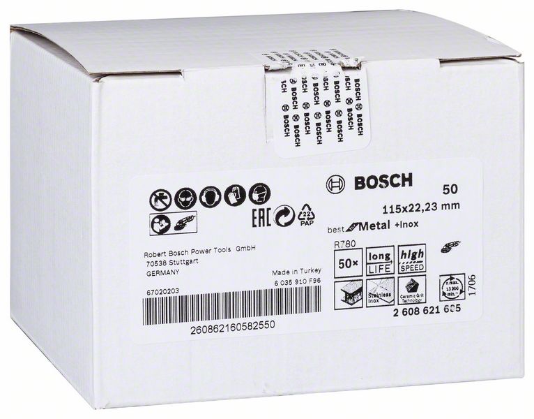 Описание Шлифовальный круг R780 Best for Metal + Inox 115x22,23 мм G50 BOSCH код товару 2608621605