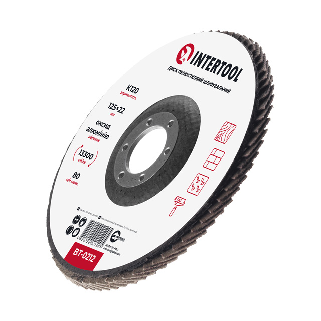 Характеристики Шлифовальный диск лепестковый 125x22мм, K120 INTERTOOL BT-0212 код товару BT-0212