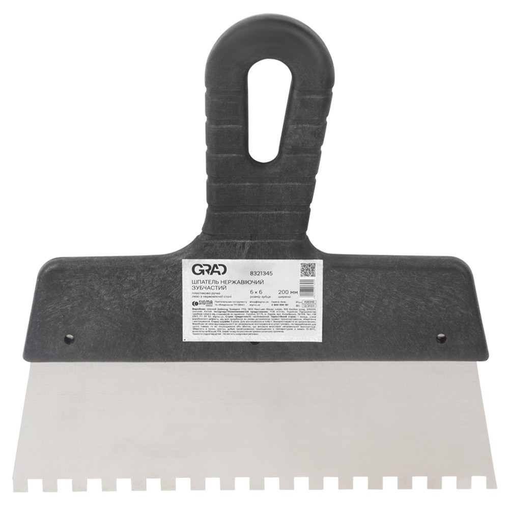 Характеристики Шпатель зубчатый (нержавеющий) 200мм 6×6 GRAD код товару 1001