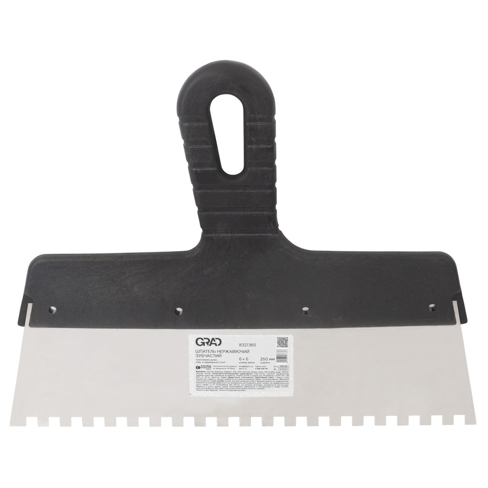 Характеристики Шпатель зубчатый нержавеющий 250мм 6×6мм GRAD код товару 1003