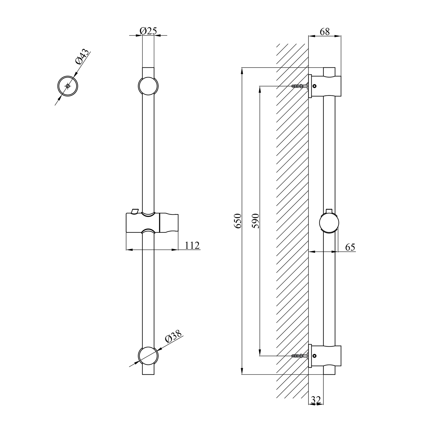 Характеристики Штанга для душа Kroner KRP из нержавеющей стали ESG230 код товару CV022984