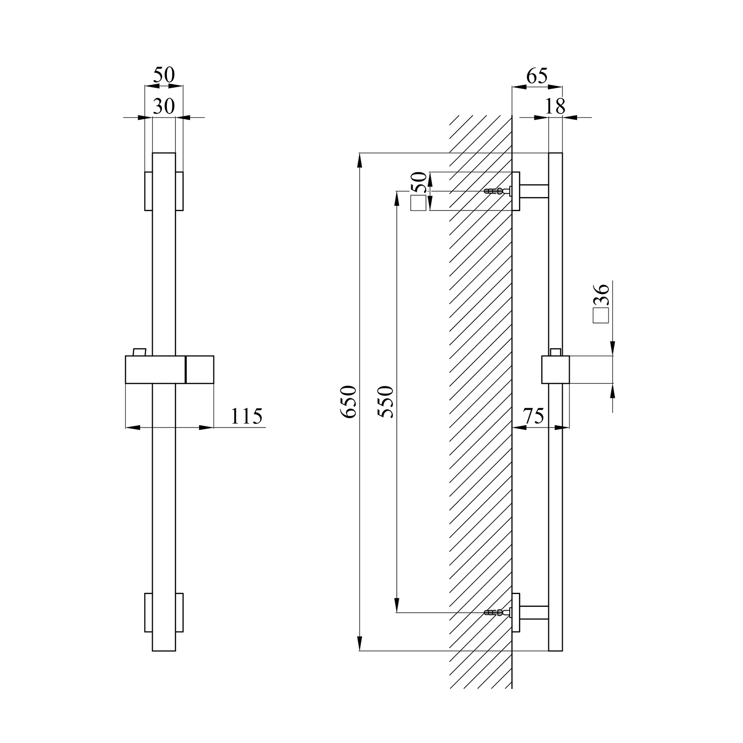 * Высота: 650 мм — оптимальная длина для душевых зон.