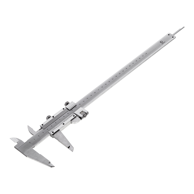 Губки штангенциркуля з двох сторін забезпечують точні вимірювання для розмітки внутрішніх та зовнішніх параметрів. Вимірювальна довжина становить 300 мм, довжина щелепи 40 мм. Оснащений коліщатком для підведення пальцем та стопорним гвинтом