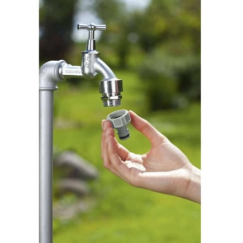 Штуцер Gardena резьбовый пластиковый 26,5 мм (3/4") – деталь устанавливается на резьбовый кран без использования инструментов. Предназначена для обеспечения герметичного соединения между краном и шлангом диаметром 9 мм.